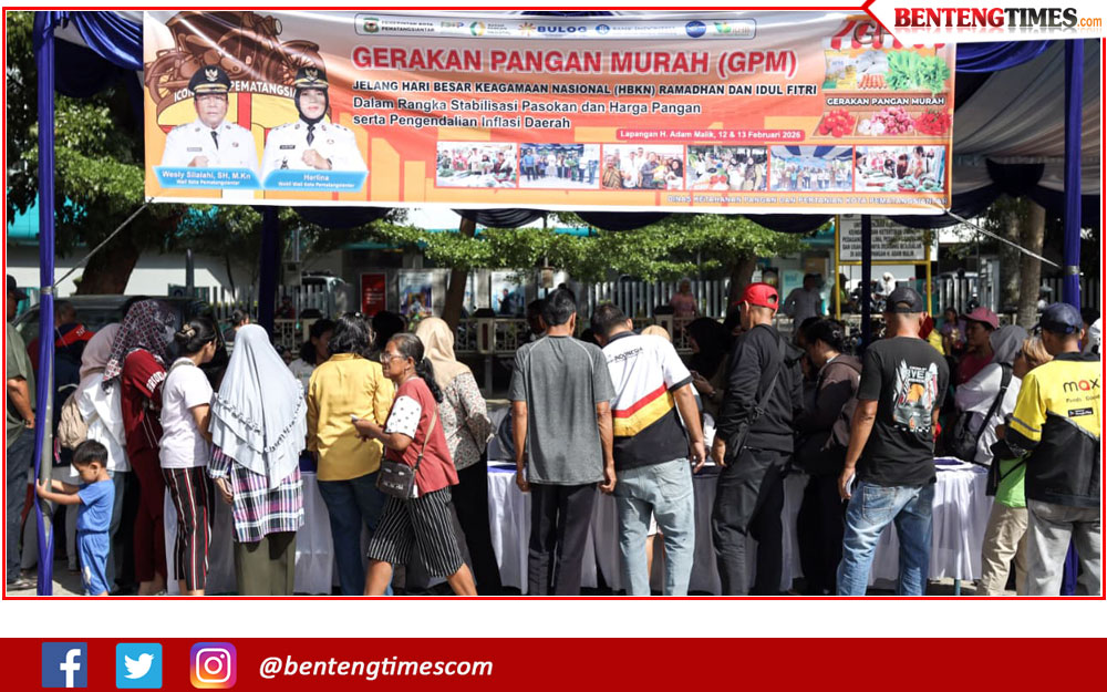 SIANTAR, BENTENGSIANTAR.com– Pemerintah Kota (Pemko) Pematangsiantar di bawah kepemimpinan Wali Kota, Wesly Silalahi kembali menggelar Gerakan Pangan Murah (GPM). GPM ini dilaksanakan dalam rangka stabilisasi pasokan dan harga pangan serta pengendalian inflasi daerah menjelang bulan Ramadhan 1447 H/2026 M. Kegiatan tersebut juga mendapat kunjungan dari Ketua TP PKK Kota Pematangsiantar Ny Liswati Wesly Silalahi.