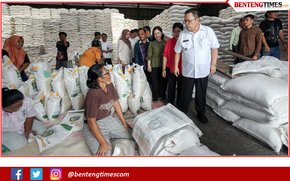 Rombongan juga mengunjungi Gudang Bulog di Jalan Medan. Di sana, stok beras terpantau melimpah dan karyawan sedang melakukan pengemasan bantuan pangan untuk disalurkan kepada warga yang membutuhkan.