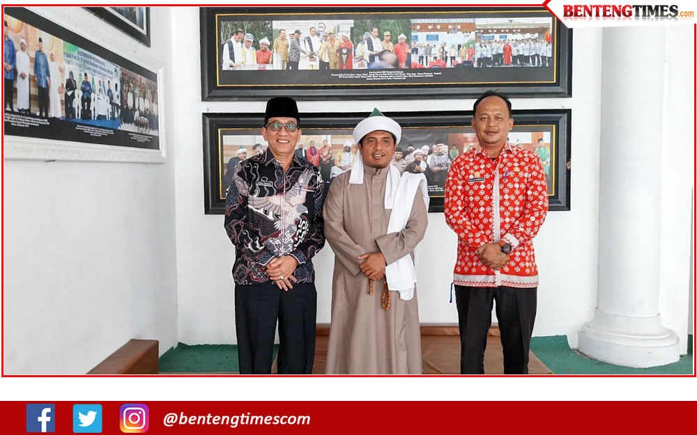 Asisten Perekonomian dan Pembangunan Setdako Pematangsiantar, Zainal Siahaan, didampingi Kabag Administrasi Pembangunan, Fidelis Edy Suranta Sembiring foto bersama dengan TGB Syekh H Ahmad Sabban El-Ramaniy Rajagukguk, di Pondok Persulukan Serambi Babussalam Simalungun, Kamis (05/02/2026).
