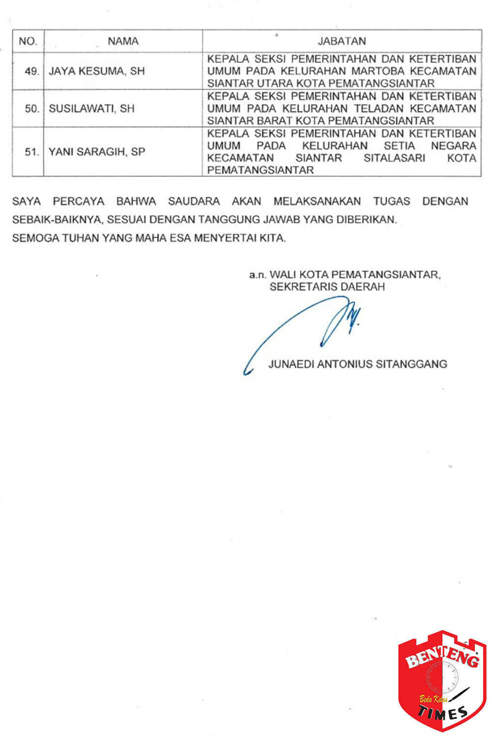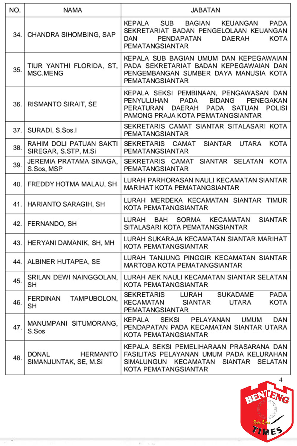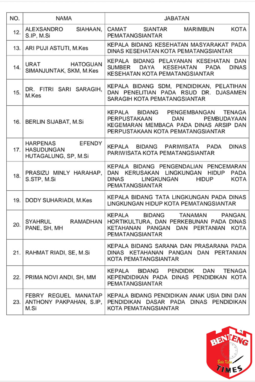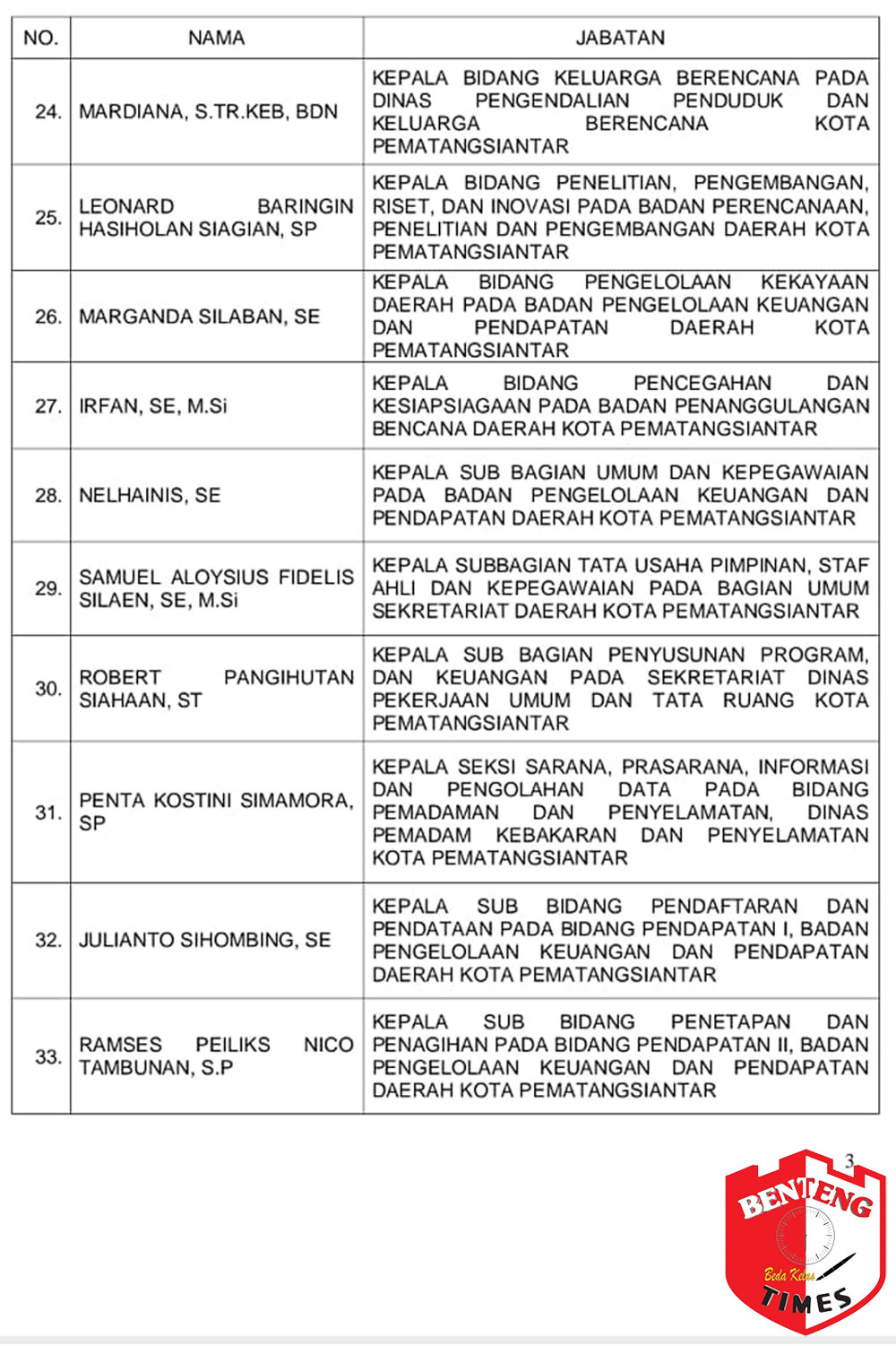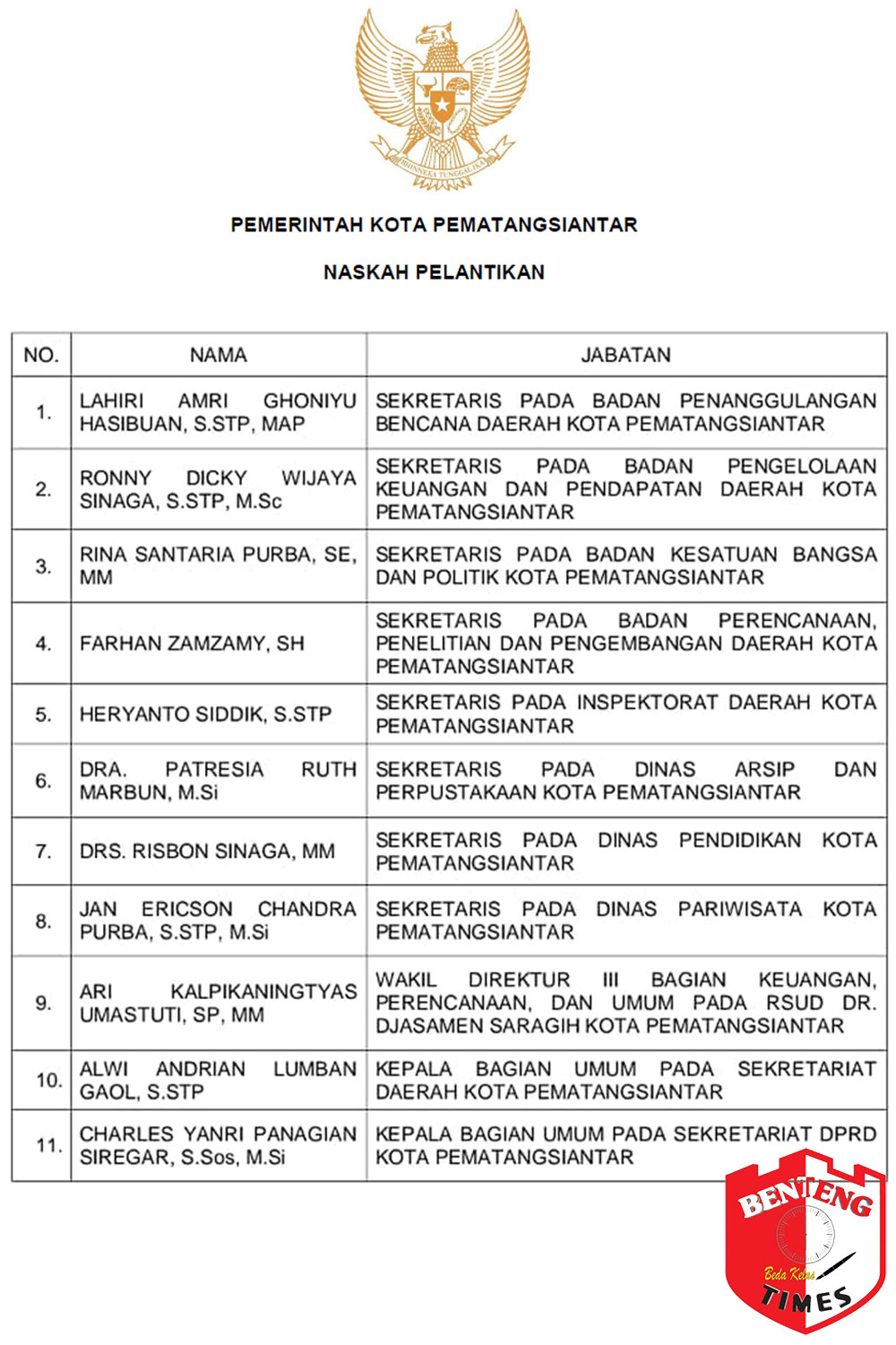 Berikut ini daftar lengkap 51 pejabat Pemko Siantar yang dilantik: