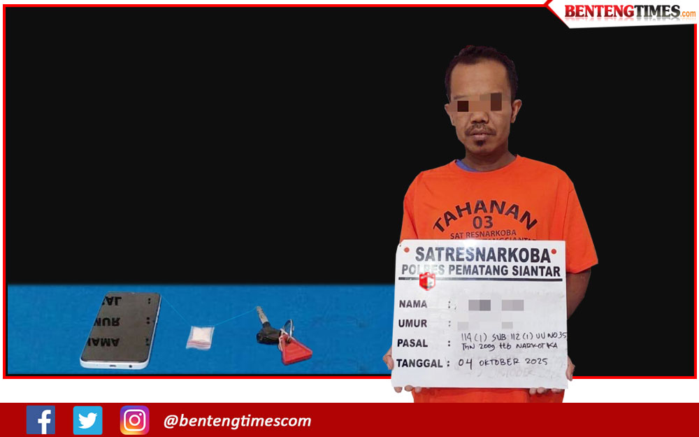 SIANTAR, BENTENGSIANTAR.com– Keinginan mendapat cuan dengan cara instan membuat seorang pria berinisial AR alias M harus mendekam di Hotel Prodeo (penjara, red) milik Polres Pematangsiantar. Pria 42 tahun ini tertangkap polisi saat hendak melakukan transaksi sabu di jalan besar Saribuk Dolok, Kelurahan Nagahuta Timur, Kecamatan Siantar Marimbun, Kota Pematangsiantar, pada Sabtu (04/10/2025), malam lalu, sekira pukul 20.00 WIB.