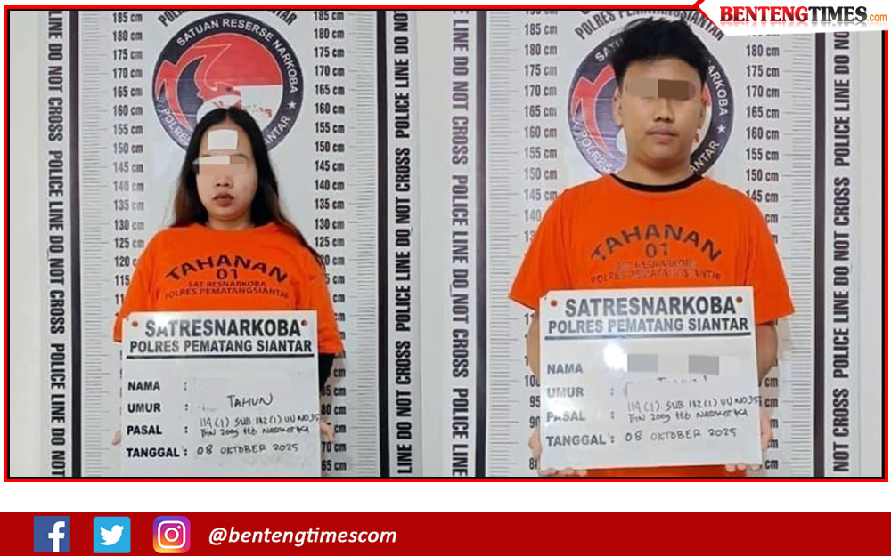 SIANTAR, BENTENGSIANTAR.com– Baru sebulan menggeluti bisnis peredaran narkoba, dua sejoli SW (19) dan DT (22) ditangkap Sat Resnarkoba Polres Pematangsiantar. Mereka diringkus di depan Kafe Pelangi, Jalan Panyabungan, Kelurahan Timbang Galung, Kecamatan Siantar Barat, Rabu (08/10/2025), dini hari sekira pukul 00.45 WIB.