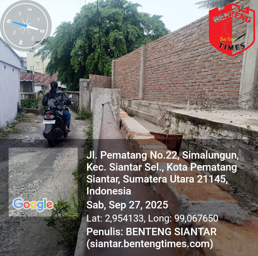 Demikian bunyi surat peringatan I dari Pol PP kepada Indra Kesuma yang diperoleh Redaksi BENTENG SIANTAR, Kamis (23/10/2025). Pol PP dalam suratnya menyebutkan, sesuai hasil monitoring lapangan bahwa Indra Kesuma telah mendirikan bangunan yang menempel langsung dengan tembok penahan banjir di daerah aliran sungai (DAS) Sungai Bah Bolon di Jalan Pematang, Kelurahan Simalungun, Kecamatan Siantar Selatan.