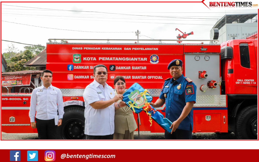SIANTAR, BENTENGSIANTAR.com– Wali Kota Pematangsiantar, Wesly Silalahi memimpin apel serah terima armada (mobil) baru kepada Dinas Pemadam Kebakaran dan Penyelamatan (Disdamkarmat) Kota Pematangsiantar. Penyerahan armada secara simbolis dilakukan langsung oleh Wesly didampingi Ketua TP PKK Kota Pematangsiantar Ny Liswati Wesly Silalahi kepada Kepala Disdamkarmat, Herri Okstarizal. Kegiatan ini digelar di Kantor Disdamkarmat Kota Pematangsiantar, Jalan Tarutung, Rabu (21/01/2026) sore.