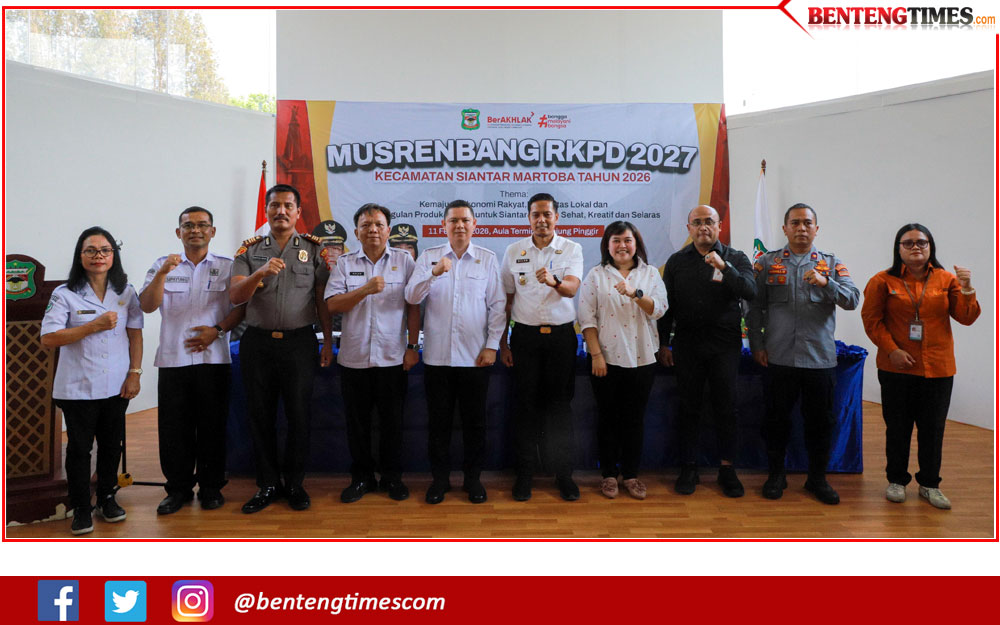 SIANTAR, BENTENGSIANTAR.com– Wali Kota Pematangsiantar, Wesly Silalahi, diwakili Staf Ahli Bidang Pembangunan, M Hamdani Lubis membuka Musyawarah Rencana Pembangunan (Musrenbang) Rencana Kerja Pemerintah Daerah (RKPD) Kecamatan Siantar Martoba. Musrenbang digelar di Gedung Rapat UPT Terminal Tipe A Tanjung Pinggir, Kelurahan Tanjung Tongah, Rabu (11/02/2026).