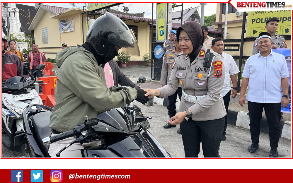 Menjelang berbuka puasa pada Senin (23/02/2026), sekira pukul 17.00 WIB, Kapolres Siantar, AKBP Sah Udur Marito Sitinjak bersama Kasat Lantas, AKP Friska Susana turun langsung membagikan takjil. Kali ini, sasarannya para pengendara yang melintas dari depan Mapolres Siantar.