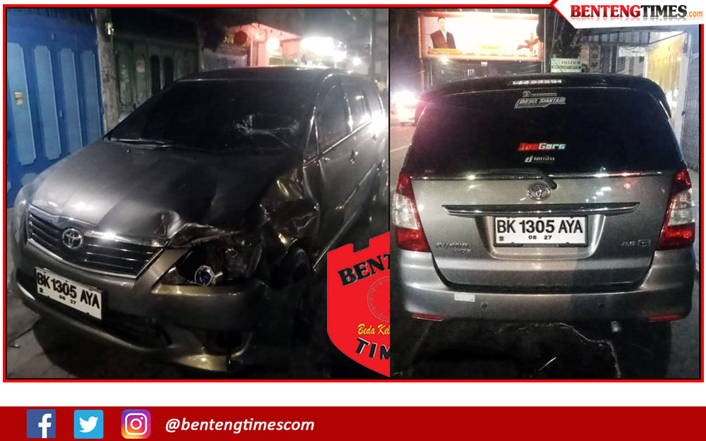 Berdasarkan pantauan BENTENG SIANTAR di lapangan saat kecelakaan terjadi pada Selasa (31/3/2026) malam, mobil Innova yang dikemudikan oleh Alif Shabhana Surya terlihat menggunakan plat nomor BK 1305 AYA.