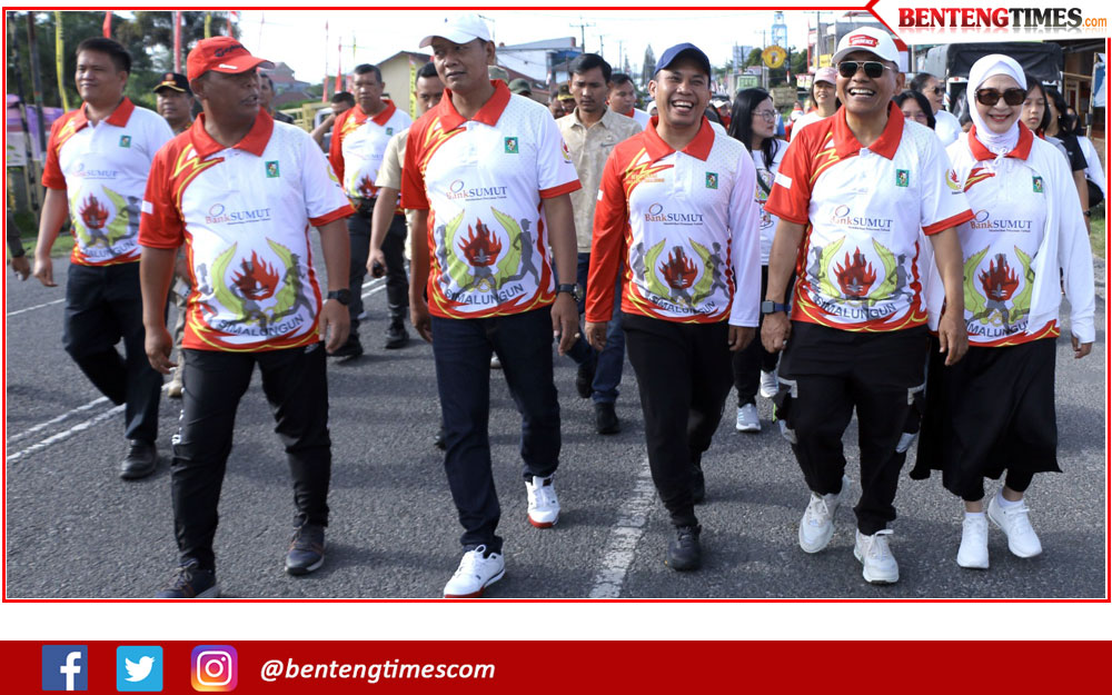 RAYA, BENTENGSIANTAR.com– Dalam rangka memeriahkan Hari Ulang Tahun ke-80 Kemerdekaan Republik Indonesia (HUT RI) Tahun 2025, Bupati Simalungun, Anton Achmad Saragih didampingi Wakil Bupati, Benny Gusman Sinaga bersama unsur Forkopimda, melepas peserta lomba lari 10K, 5K, dan 3K yang dimulai dari halaman Kantor Bupati Simalungun, Sumatera Utara, pada Kamis (14/8/2025).