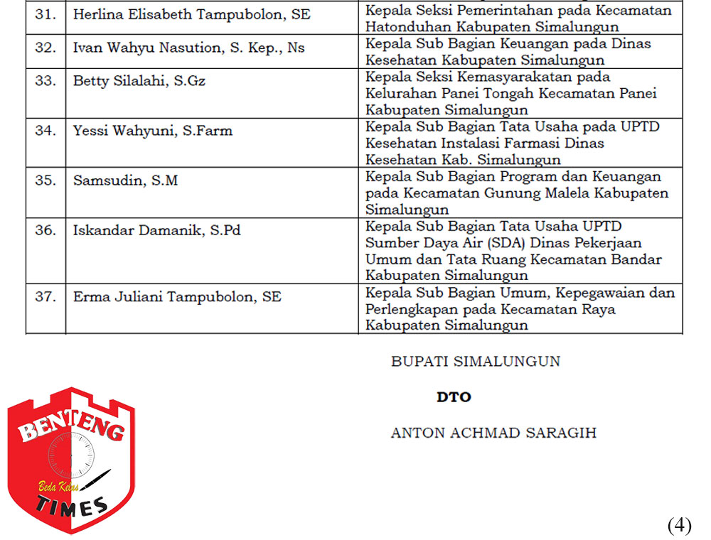 Daftar Lengkap 37 Pejabat di Simalungun Dilantik Tahun 2026, Ada Camat dan 3 Lurah