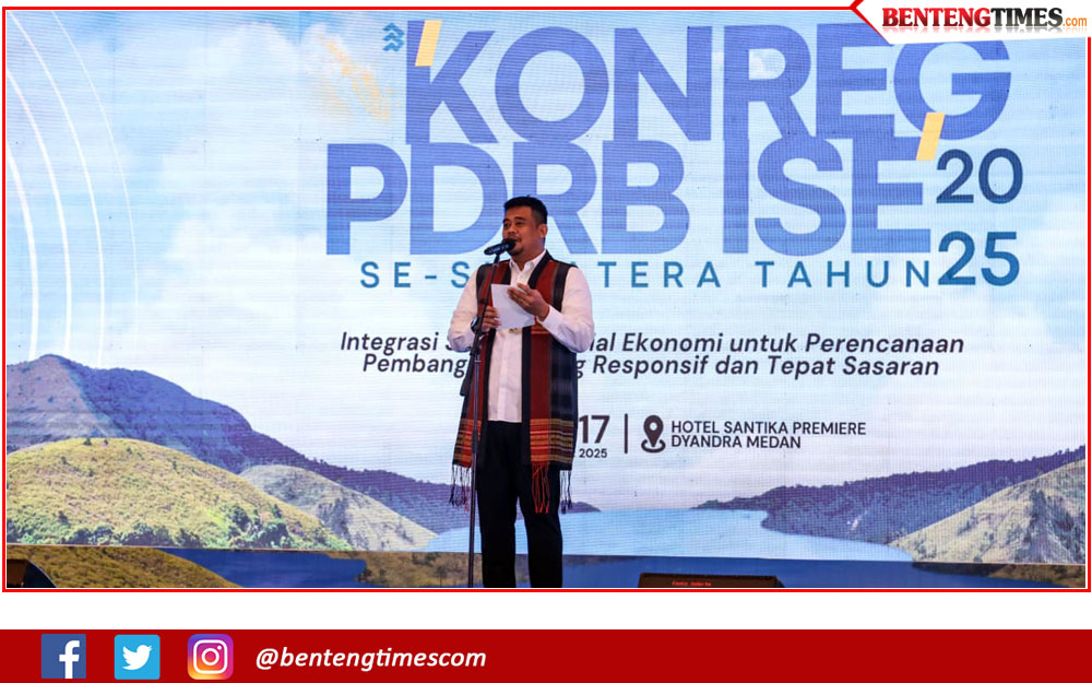 Hal itu disampaikan Gubernur Sumut, M Bobby Afif Nasution, di hadapan para bupati/wali kota se-Sumut pada Acara Konsultasi Regional (Konreg) Produk Domestik Regional Bruto (PDRB) dan Indikator Sosial Ekonomi (ISE) 2025 se-Sumatera, di Hotel Santika Premiere Dyandra Hotel & Convention Medan, Jumat (17/10/2025).