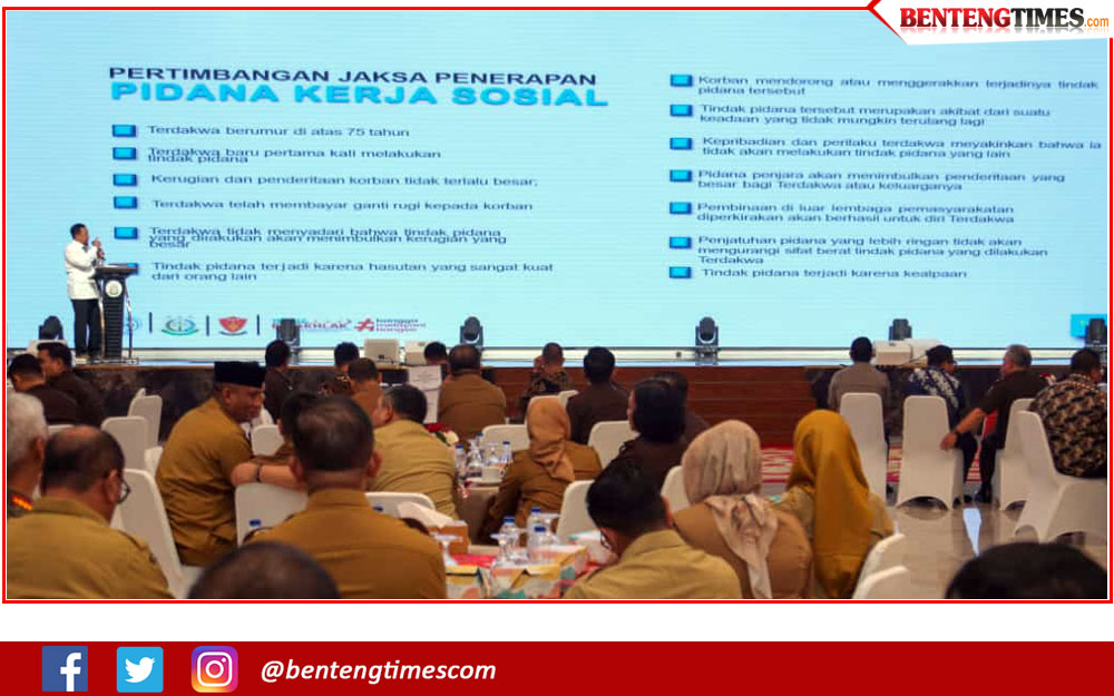 “Pelaksanaan pidana kerja sosial didasari putusan pengadilan, diawasi jaksa, serta dibimbing oleh pembimbing kemasyarakatan. Delik yang dapat dikenakan adalah tindak pidana dengan ancaman kurang dari lima tahun, ketika hakim menjatuhkan pidana penjara maksimal enam bulan atau denda kategori II sebesar Rp10 juta,” terangnya.